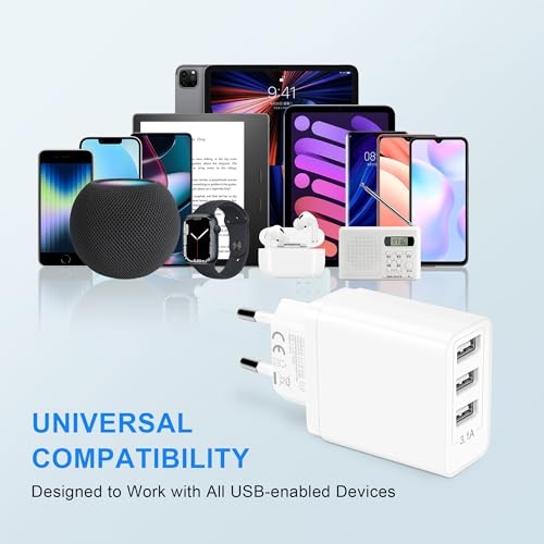 【3-Port USB ladegerät】Multi-Port usb ladegerät für das Aufladen mehrerer Geräte: Mit drei USB-Typ-A-Anschlüssen kann das Ladegerät bis zu drei kleine Geräte aufladen, was Platz in Ihren Steckdosen spart und gleichzeitig die Anzahl der Geräte erhöht, die gleichzeitig aufgeladen werden können. 【15,5 W Ausgangsleistung】: USB adapter Die Gesamtleistung des Ladegeräts beträgt 15,5 W und kann einen maximalen Strom von 3,1 A ausgeben. Selbst wenn drei Geräte gleichzeitig aufgeladen werden, kann es jedes Gerät mit nicht weniger als 5 V und 1 A versorgen, um den Anforderungen der meisten USB-Geräte gerecht zu werden. 【Breite Kompatibilität】: Dieses USB stromstecker Ladegerät hat eine breite Kompatibilität, nicht nur ist es ein guter Begleiter für das Aufladen Ihrer Mobiltelefone, sondern auch kompatibel mit Ihrem Telefon Zubehör und andere elektronische Geräte wie Kopfhörer, Tablets, E-Book-Reader, Lautsprecher, etc. Sein Typ-C-Kabel ist auch für die meisten Produkte auf dem Markt zugänglich. 【Sicherheit Zertifiziert】: die usb-verbindung hat mehrere abwehrsysteme und intelligente chips eingebaut. Feuerfeste materialien anzuwenden, die hitzefest, kalt, chemisch resistent und feuerfest sind, um überdruck, überhitzung und so weiter zu vermeiden 【Was Man Bekommt】: 1Pack 3Port USB A Stecker.