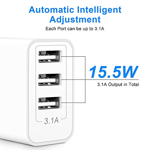 USB Stecker Ladegerät, ARCCRA Mehrfach 3-Port 15.5W USB Adapter Steckdose 5V 3.1A-2A-1A Charger Plug Netzstecker Netzteil Ladestecker für iPhone, Airpods, iPad, Samsung, Xiaomi, Tablet, Handys