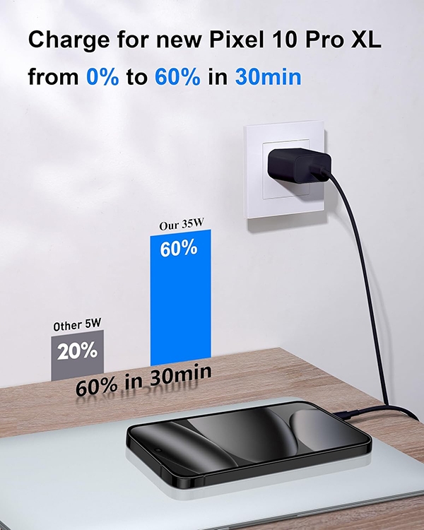 35W USB C Fast Charger for Google Pixel 10/10 Pro/10 Pro XL/9/9 Pro XL/Fold/8/8a/8 Pro/7/7a/6/5/4/3 XL, 2 Pack 35Watt Type C Super Fast Wall Charger Block Power Adapter + 3FT USB-C to C Charging Cable