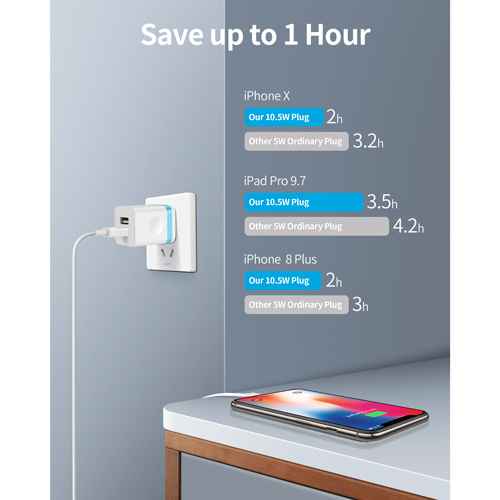 Dual ports wall charger can charge two devices simultaneously at high speed. It can really save your time!