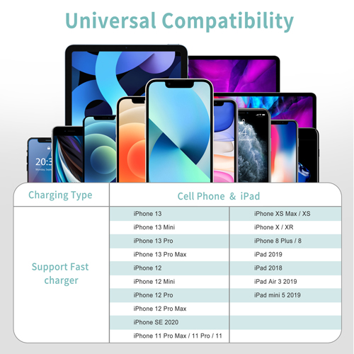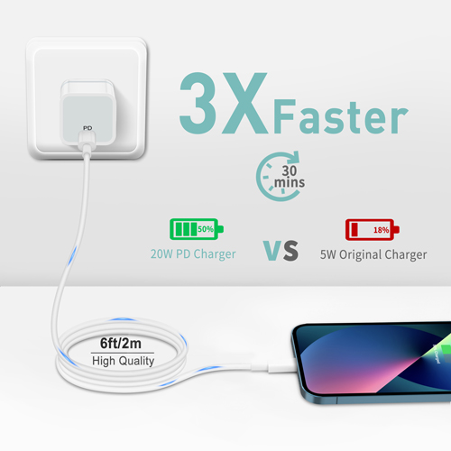 Benefit by the 20W PD power delivery fast charging technology, your iPhone 13 / 12 (applicable for iPhone 8 and later model) can be charged up to 50% in about 30 minutes; Compared with 5W original charger, the 20W PD fast charger can save more than 1 hour for you!