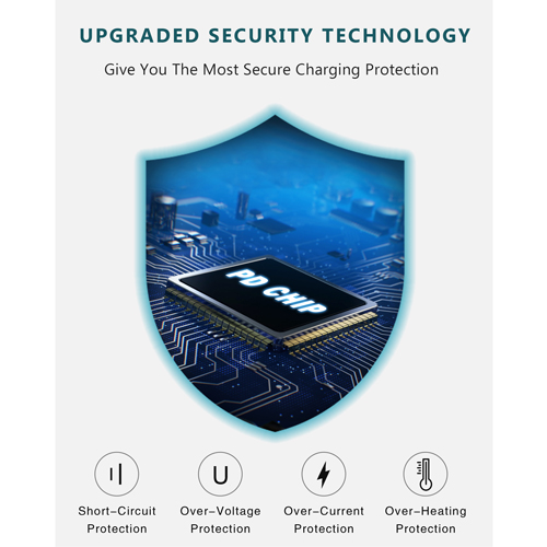 With optimal built-in safeguards, the USB C plug ensures your devices safety against over-current, over-voltage, over-heating and short-circuit.