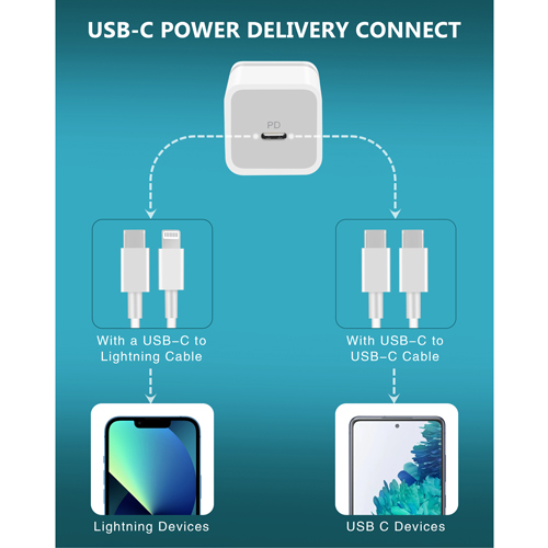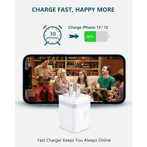 The USB C charger block features a USB type c port and supports 20W power delivery, saving your time at a fast charging speed.