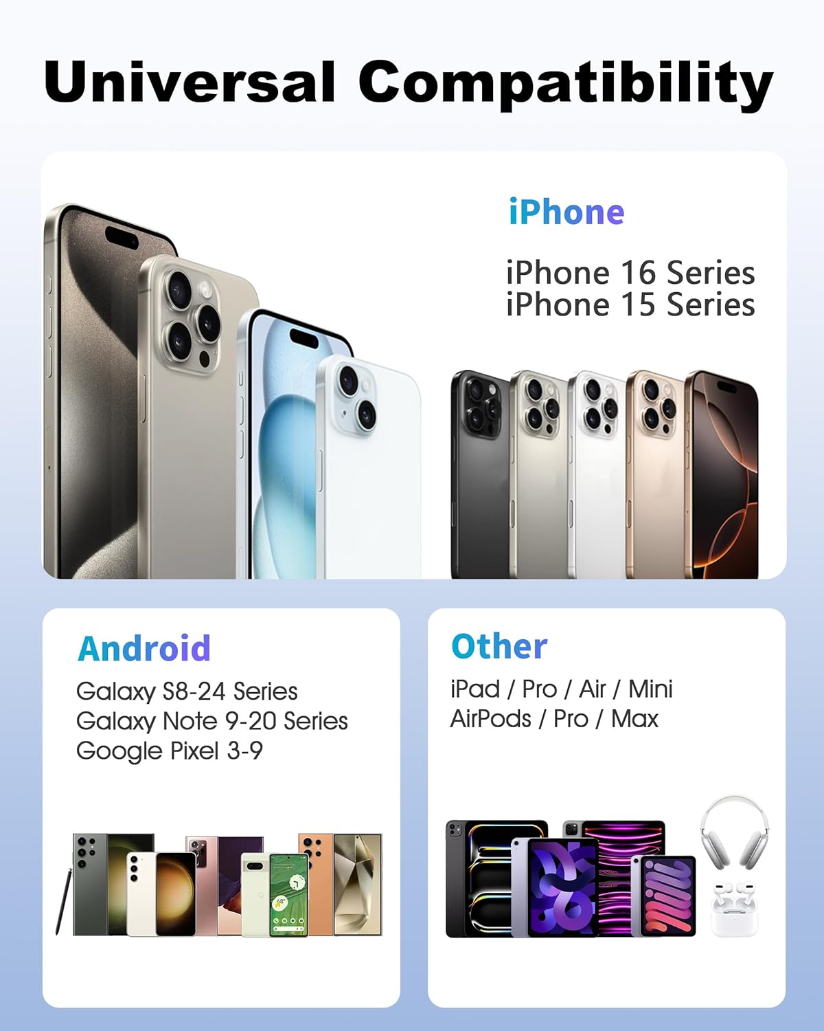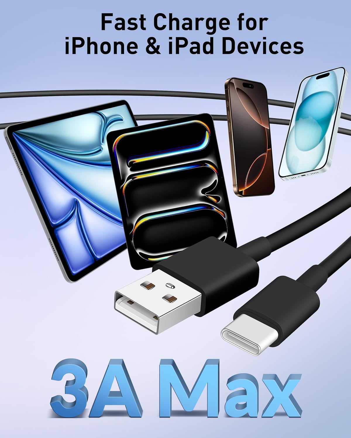 Designed for iPhone 16/15/iPad Series: The Carplay cable USB C car charger cord support fast and efficient charging for your iPhone 16/15/iPad series, Android Phones, and other devices Enhanced Practicality: Specifically designed for use in the car, this iPhone 16/15 charger cord activates Car Play immediately after inserting into the device, ensuring that you charge your device while on the move, making it an ideal choice for road travel and daily commuting Widely Compatibility: Car carplay cable cord compatible with iPhone 16/16 Plus/16 Pro/16 Pro Max/15/15 Plus/15 Pro/15 Pro Max, for iPad 10th, iPad Pro 13/11 inch (2024), iPad Pro 12.9 inch (3rd to 6th Generation), iPad Pro 11 inch (1st to 4th Generation), iPad Air 5th/4th, iPad Mini 6th, and the carplay car charger cable also fit for Samsung, LG, Moto, Google, Android Auto Fast Charge and Sync: Carplay USB C cord support high-speed charging with up to 3A current output, and enjoy data transfer of up to 480Mbps for music, video, seamless, and file transfers What Your Get: 2-Pack USB A to USB C Cable, Worry-free 18 month warranty. Note: If you experience problems with CarPlay functionality, please try to reverse the USB C plug to try again