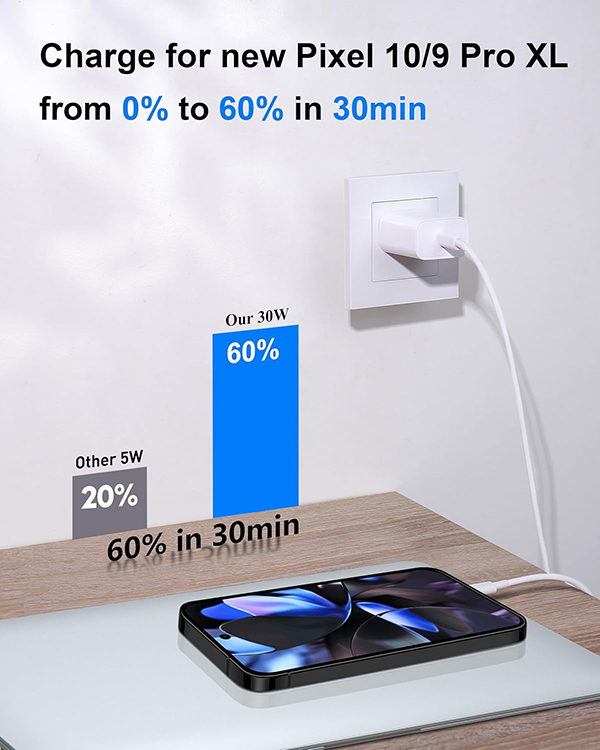 Model Number: D20P43T Manufacturer: Shenzhen Dipinle Technology Co., Ltd Designed for Google Pixel Series: Experience the power of PD 3.0 fast charging technology with this 30W USB-C charger block. Charge for your Google Pixel 10/9/8 up to 60% in just 30 minutes, help you work efficiently 6FT Pixel Charger Cord: The 6ft length lets you freely charge for your Pixel devices from any occasions such as on couch, bedroom, at offices, or on the go. Supports PD fast charging up to 60W (3A/20V) and data transfer speeds 480Mbps Widely Compatibility: 30W USB C Fast wall charger for Google Pixel 10/10 Pro/10 Pro XL/10 Pro Fold/9/9 Pro/9 Pro XL/9 Pro Fold/8/8a/8 Pro/7/7a/7 Pro/6/6a/6 Pro/5/5a/4/4a 5G/4 XL/3a/3a XL, Pixel Tablet, Pixel Slate, Pixelbook, Samsung Galaxy S25/S24/S23/S22/S21/S20/Ultra, Note 20/10, LG, Moto, Tablet, Android Phones, and more Safe and Reliable: This pixel fast charger built in smart IC chip, automatically matches the current required by the device to maximize the charging efficiency. Multiple safety protection systems to prevent over-charging, overheating and short-circuit to keep connected devices safe What You Get: 1 x 30W Fast USB C Wall Charger Block, 1 x 6FT Type C to Type C Charging Cable. If you have any questions or issues, please get in touch with us. Our dependable customer care will keep online 24/7 and respond to you with a suitable solution